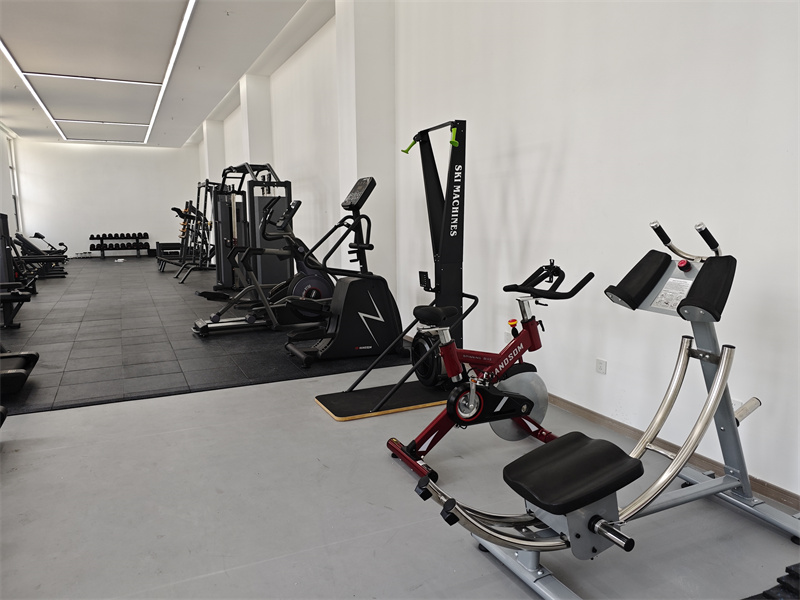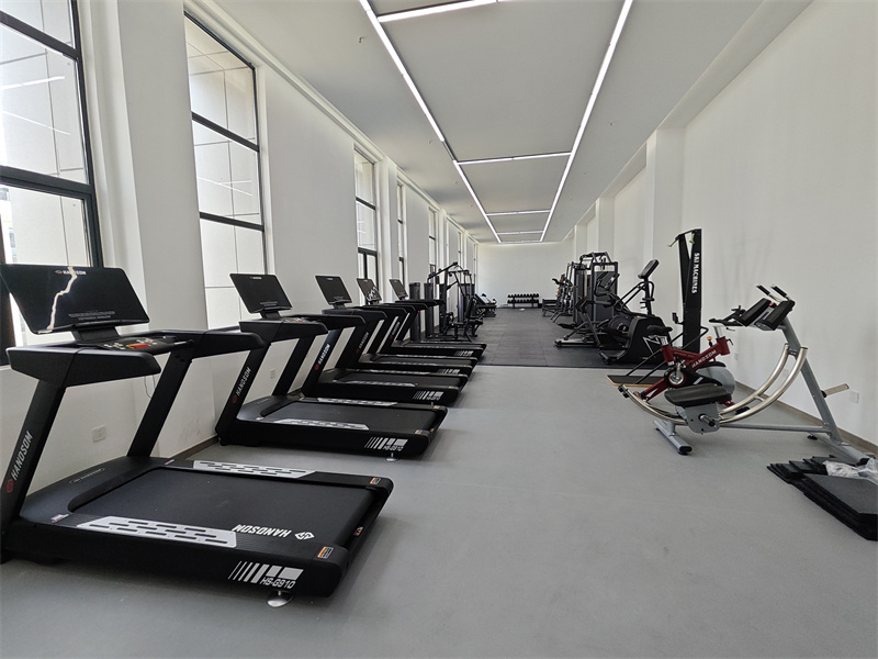 配置方案:该单位健身房主要以健身和休闲为主,增强职工身体素质,丰富业余生活,配置主要以悍德森有氧器械和力量器械相结合:有跑步机、动感单车、椭圆机、卷腹器、大飞鸟、单机训练器、乒乓球桌、台球桌、哑铃等健身设备。
